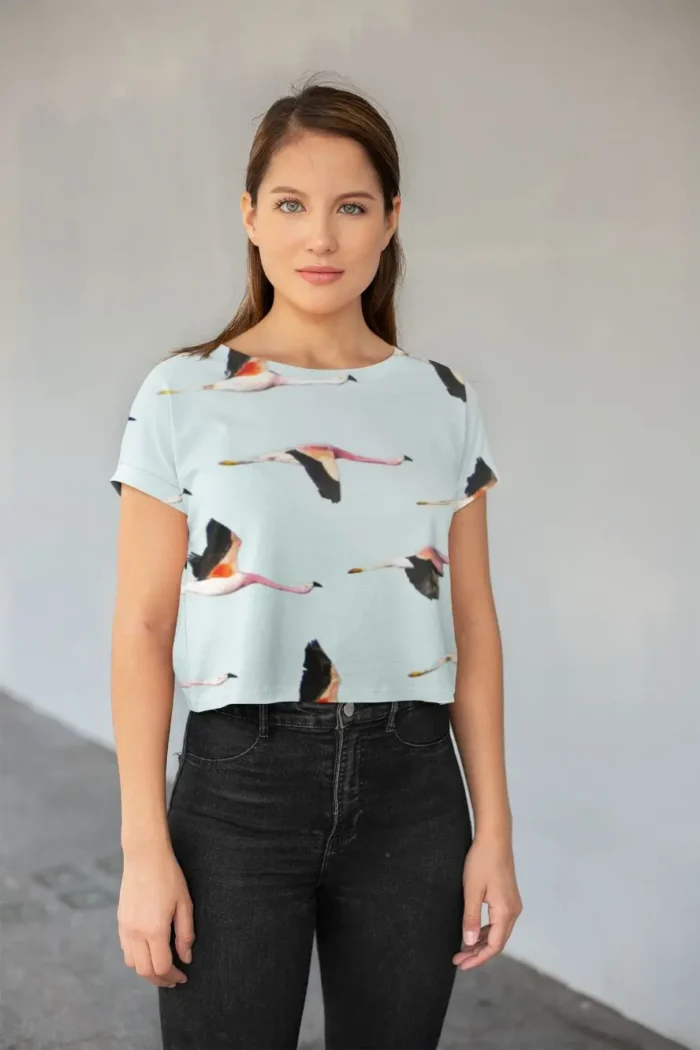 Looking for you next wardrobe favorite? Well, look no further because this crop tee is printed and sewn to fit you just right. To top that off, the original all-over design is definitely worth showing off, so don’t hesitate to own one of these tees – they’re meant to be adored.