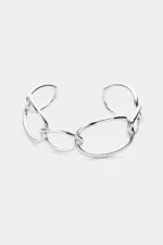 The oval loops design offers a contemporary feel to this statement cuff. At .9″ high it is is the perfect size. Open design in the back allows for proper fit. Lead and nickel compliant.