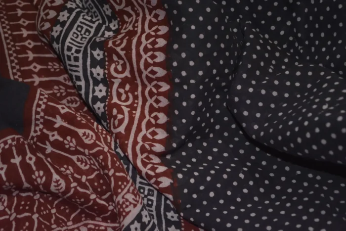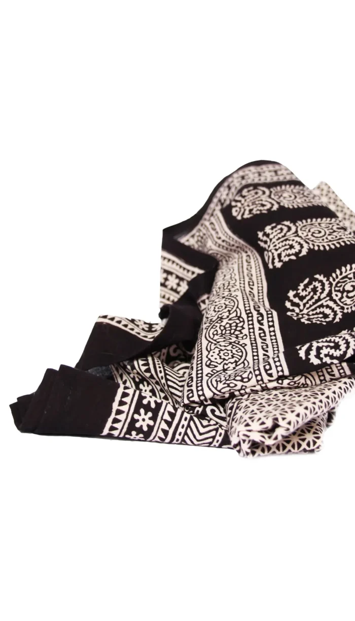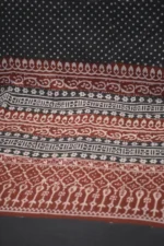 Hand Block printing is a century-old Indian art form and a hand skill practice that involves a lot of hard work and the production process is painstaking and manual utilizing natural dyes and vegetable pastes. In the making of this printed fabric, a hand-carved teak wood block is dipped in plant extracted dyes in black and red and stamped by hand onto the soft cotton fabric. Crafted with natural dyes and hand-printed using stained wood blocks makes it a piece of art.