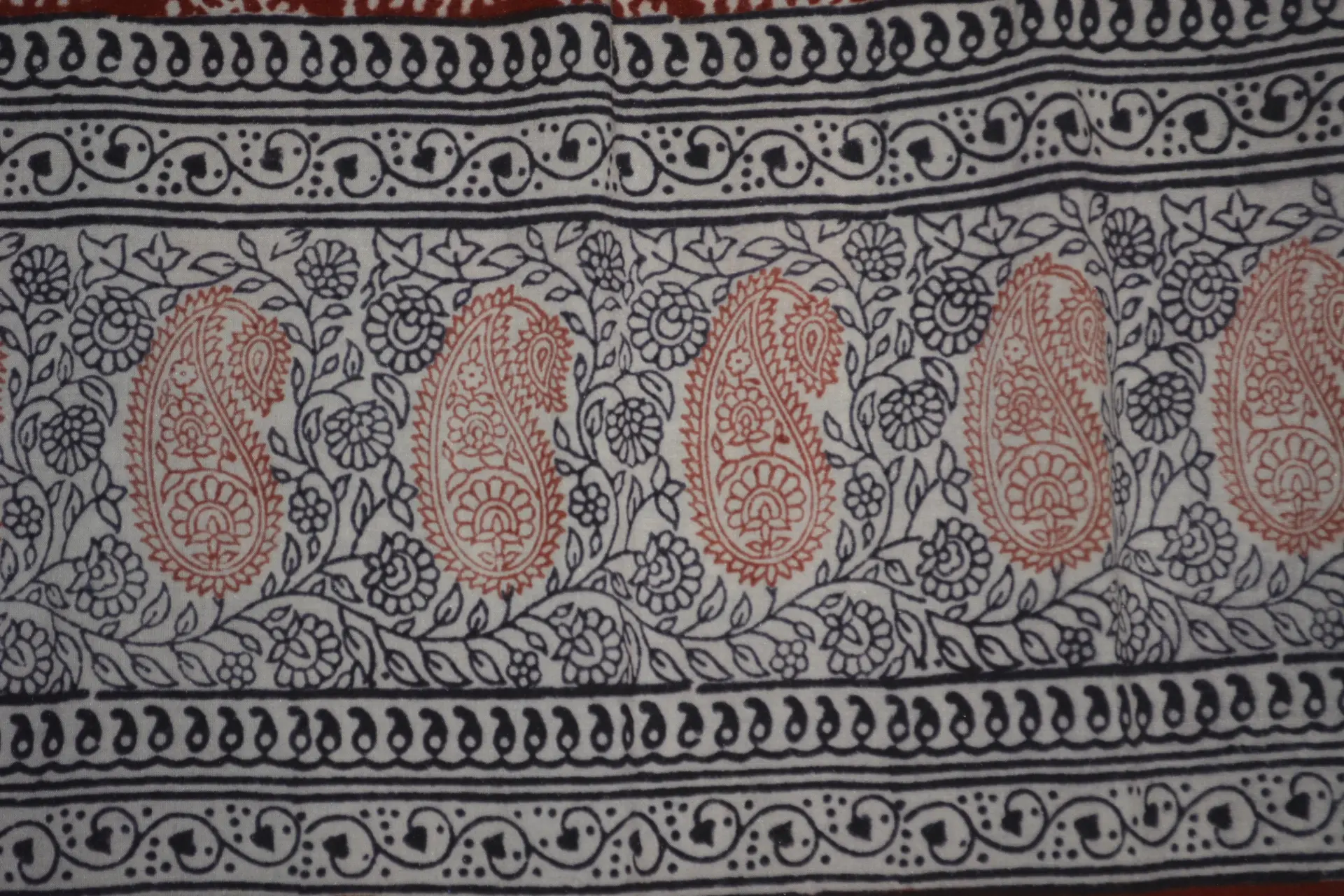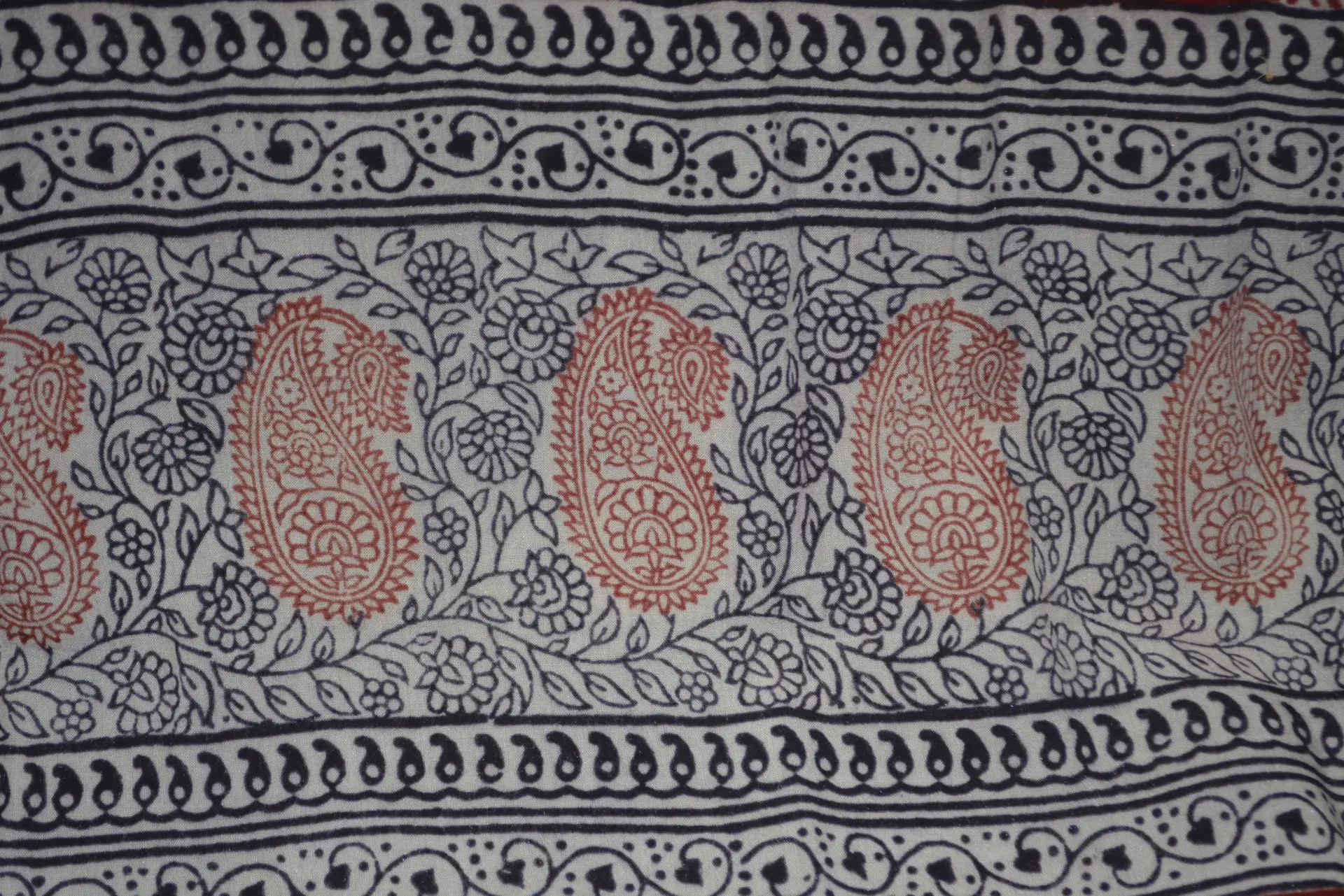 RED AND BLACK INTRICATE PAISLEY AND FLORAL HAND BLOCK PRINTED COTTON FABRIC WITH NATURAL DYES FROM ARTISANS IN INDIA