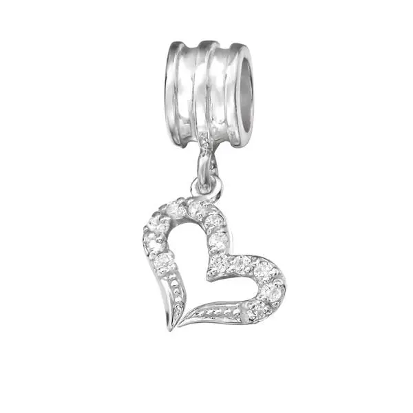 Silver Hanging Heart Charm Bead. Made of sterling silver with exquisite workmanship. Charm For Bracelets & Necklaces.