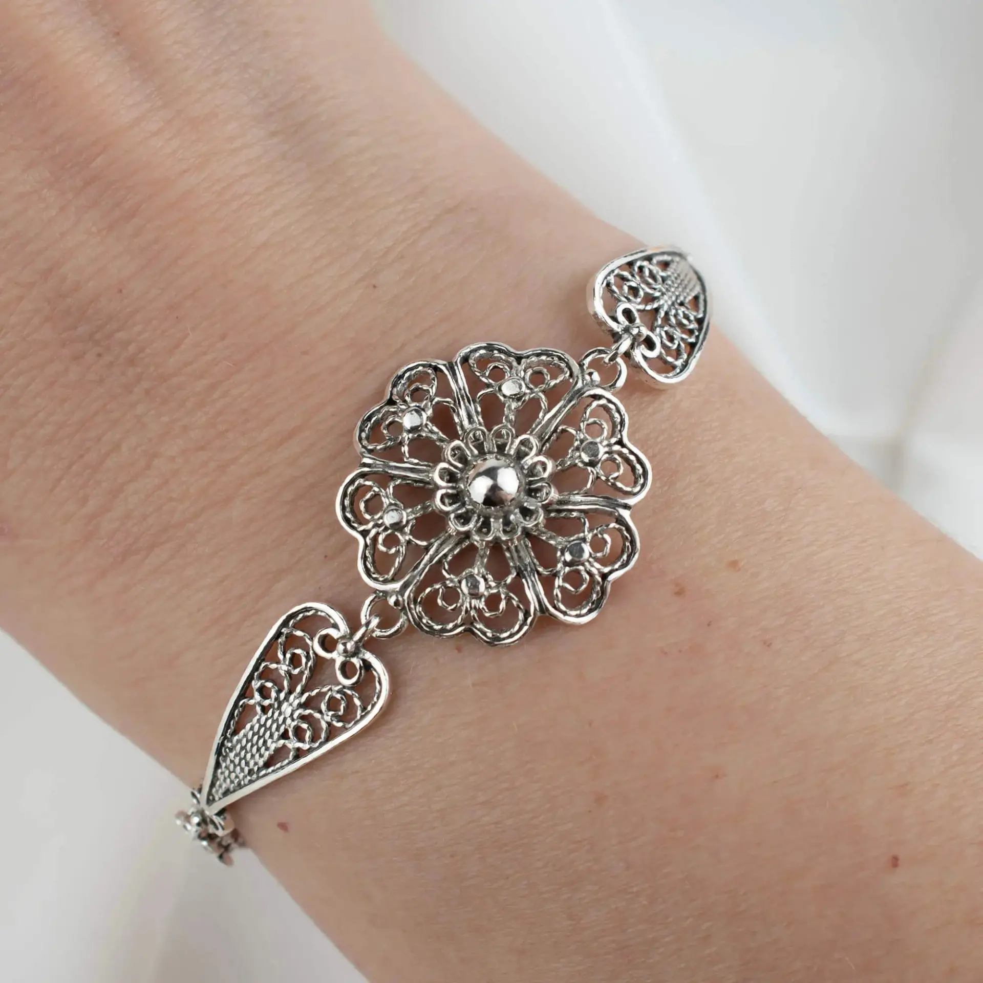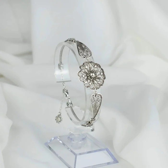 Meticulously hand-wrought using ancestral filigree methods, our clover bracelet exemplifies masterful, enduring artistry.