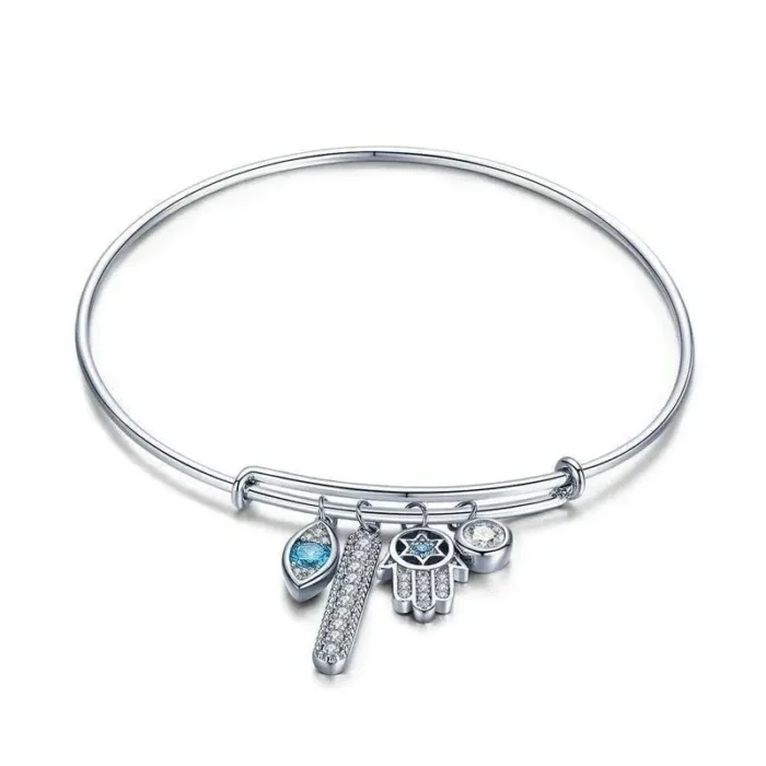 Home Bracelets Sterling Silver Hamsa Bangle Bracelet